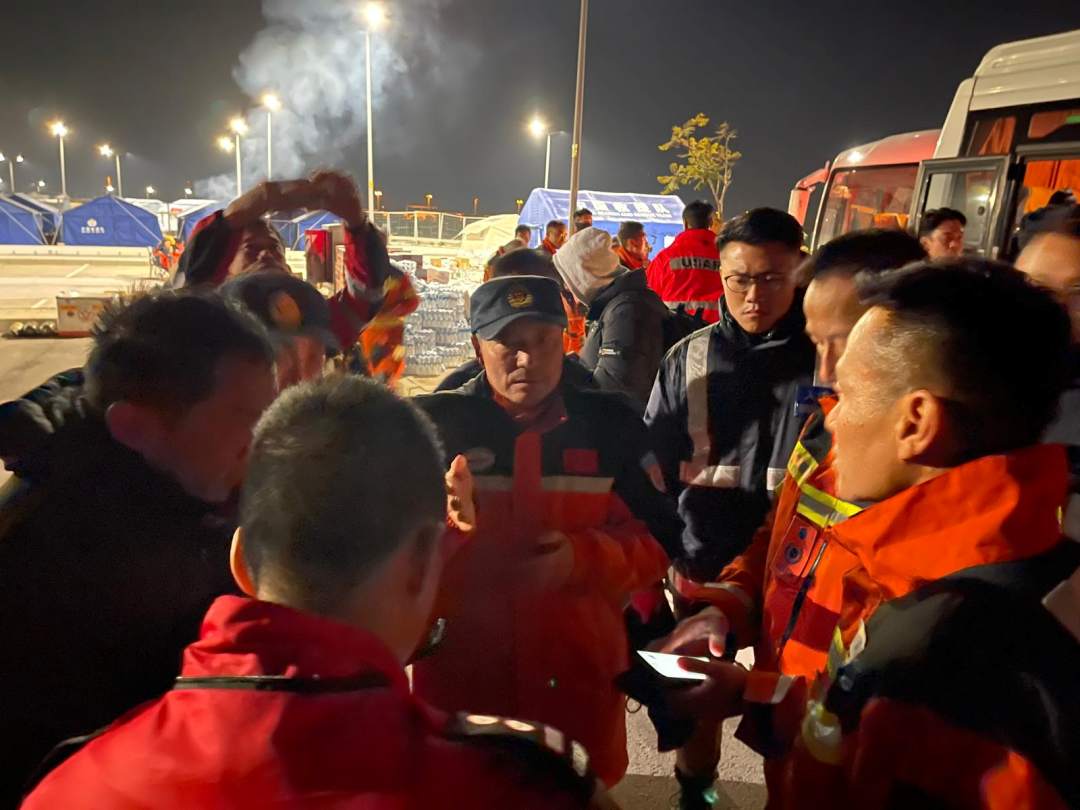 A 59-member search and rescue team sent by China's Hong Kong Special Administrative Region (HKSAR) government reached the disaster area of Hatay, Türkiye at 10:30 pm local time on Feb. 10, 2023. (Photo/People's Daily App)