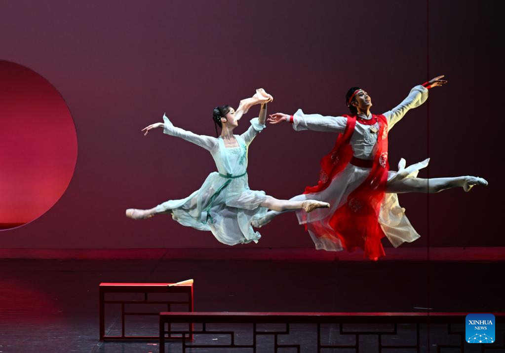 Actors of the National Ballet of China perform during the Ballet "A Dream of Red Mansions" at the Beijing Tianqiao Theater in Beijing, capital of China, Feb. 10, 2023. (Xinhua/Jin Liangkuai)