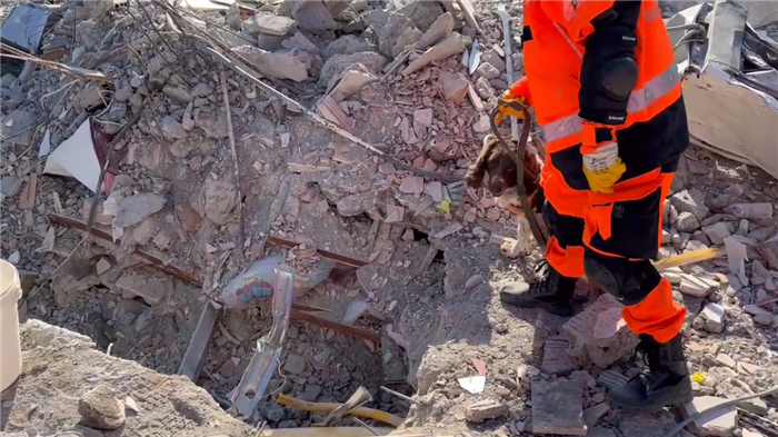 After reaching the site, the search dog Lucky helped us pinpoint the missing person's location. The extensive damage to the building made the rescue operation incredibly challenging, requiring a gradual approach to the relief operation.
