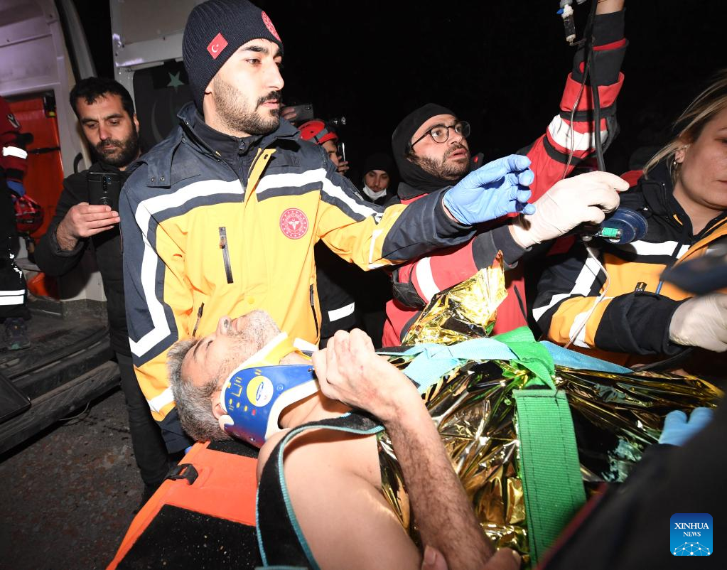 Rescuers transfer an earthquake survivor in Antakya in the southern province of Hatay, Trkiye, Feb. 11, 2023. (Xinhua/Shadati)