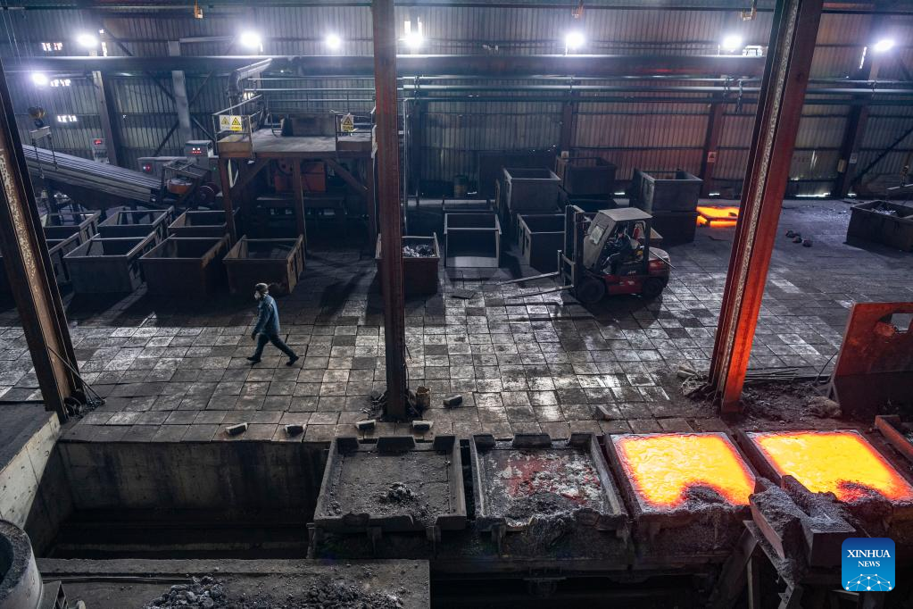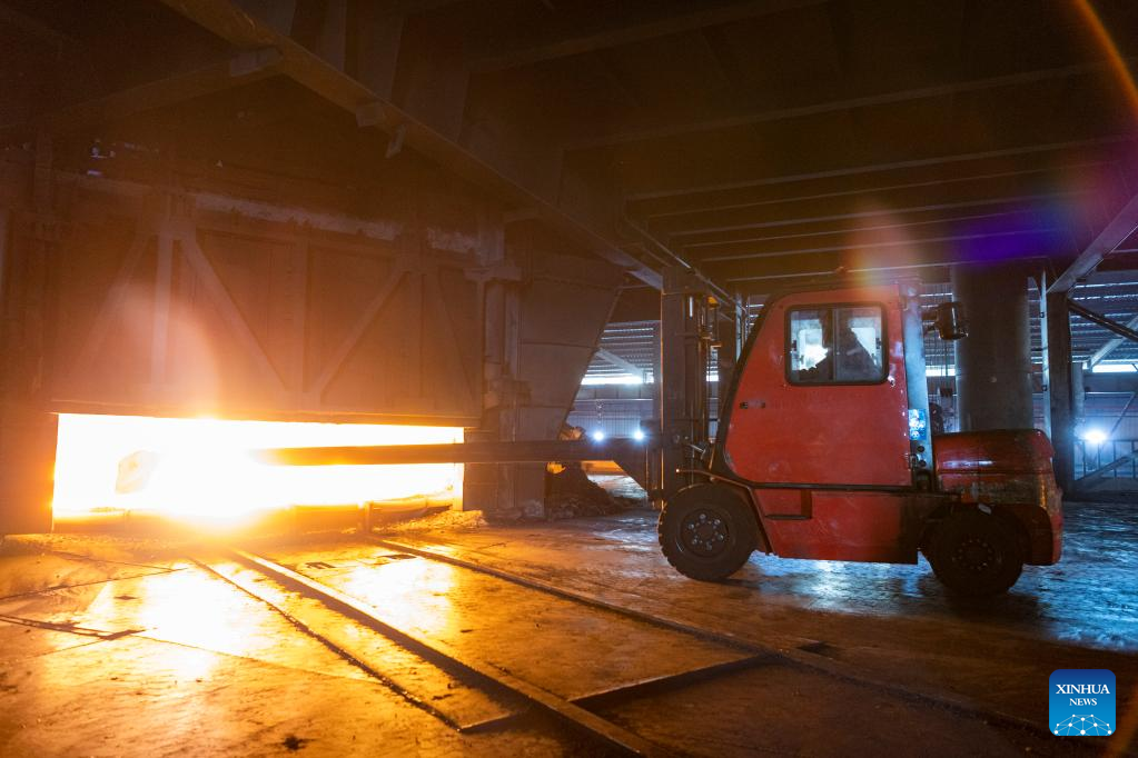 Employees work at the Heihe Hoshine Silicon Industry Co., Ltd. in the Heihe Area of China (Heilongjiang) Pilot Free Trade Zone in northeast China's Heilongjiang Province, Feb. 11, 2023. Recently, enterprises in the Heihe Area of China (Heilongjiang) Pilot Free Trade Zone have been busy with production to meet the orders and to make a good start in the first quarter of 2023. (Xinhua/Xie Jianfei)