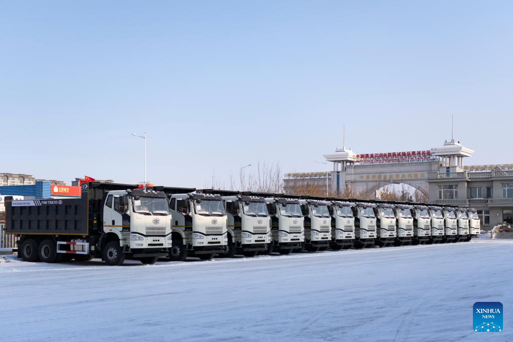 Vehicles to be exported are seen in the Heihe Area of China (Heilongjiang) Pilot Free Trade Zone in northeast China's Heilongjiang Province, Feb. 11, 2023. Recently, enterprises in the Heihe Area of China (Heilongjiang) Pilot Free Trade Zone have been busy with production to meet the orders and to make a good start in the first quarter of 2023. (Xinhua/Xie Jianfei)