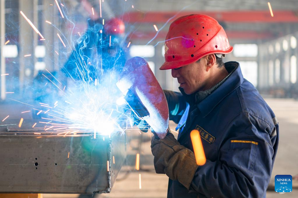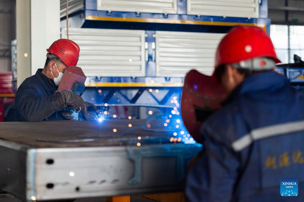 An employee works at the Heihe Liyuanda Special Automobile Manufacturing Co., Ltd. in the Heihe Area of China (Heilongjiang) Pilot Free Trade Zone in northeast China's Heilongjiang Province, Feb. 11, 2023. Recently, enterprises in the Heihe Area of China (Heilongjiang) Pilot Free Trade Zone have been busy with production to meet the orders and to make a good start in the first quarter of 2023. (Xinhua/Xie Jianfei)