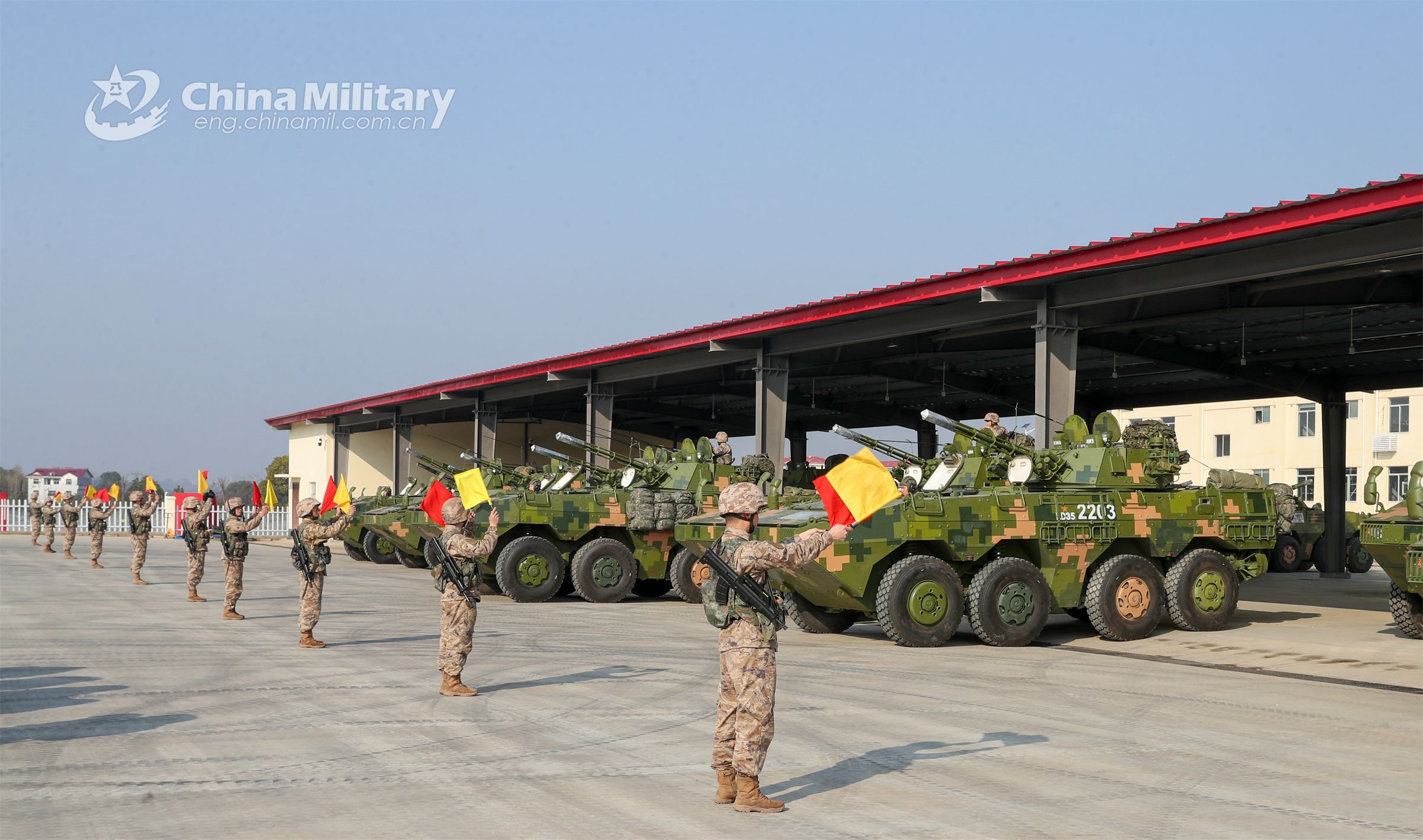 Soldiers assigned to a battalion under the PLA 72nd Group Army signal the infantry fighting vehicles to move out of the garage during a combat readiness training exercise on January 18, 2023. (eng.chinamil.com.cn/Photo by Zhang Mao)