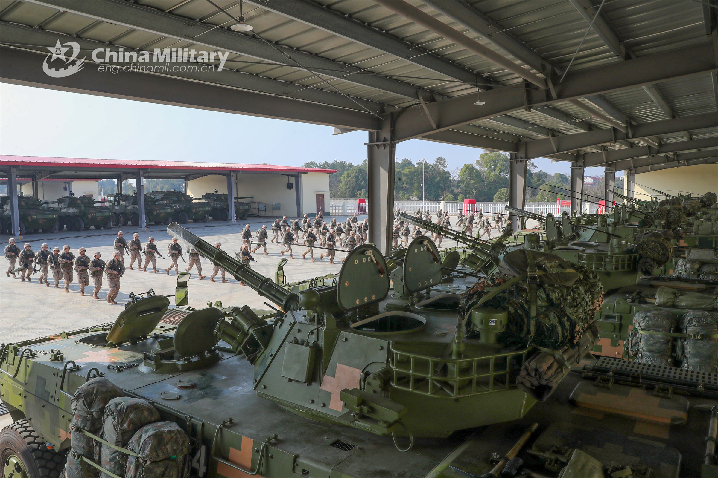 Soldiers assigned to a battalion under the PLA 72nd Group Army rush to their posts in full battle gears for emergency assembly during a combat readiness training exercise on January 18, 2023. (eng.chinamil.com.cn/Photo by Zhang Mao)