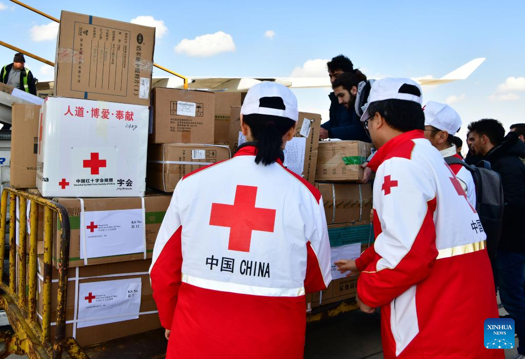 DAMASCUS, Feb. 13 (Xinhua) -- A second batch of relief aid from the Red Cross Society of China (RCSC) arrived in Syria by plane on Monday to provide emergency supplies for people affected by the earthquakes in the country.
