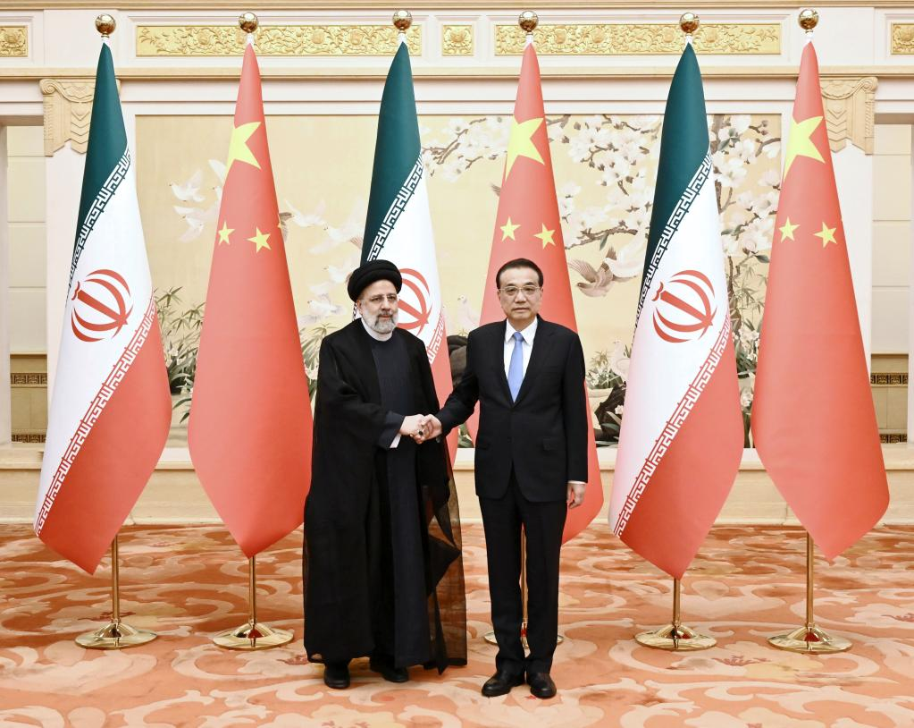 Chinese Premier Li Keqiang meets with visiting President of the Islamic Republic of Iran Ebrahim Raisi at the Great Hall of the People in Beijing, capital of China, Feb. 14, 2023. (Xinhua/Yan Yan)