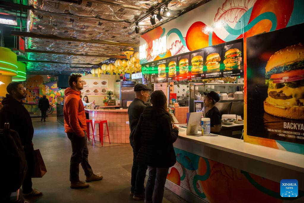 People order food at a food court in the Brooklyn borough of New York, the United States, on Feb. 14, 2023. The U.S. Labor Department reported Tuesday that U.S. consumer price index, a major gauge of inflation, rose 0.5 percent in January on a monthly basis, the biggest increase in three months and higher than the 0.4 percent expected by economists. The annual rate hit 6.4 percent in January, down slightly from 6.5 percent in December and higher than the market consensus of 6.2 percent. (Photo by Michael Nagle/Xinhua)