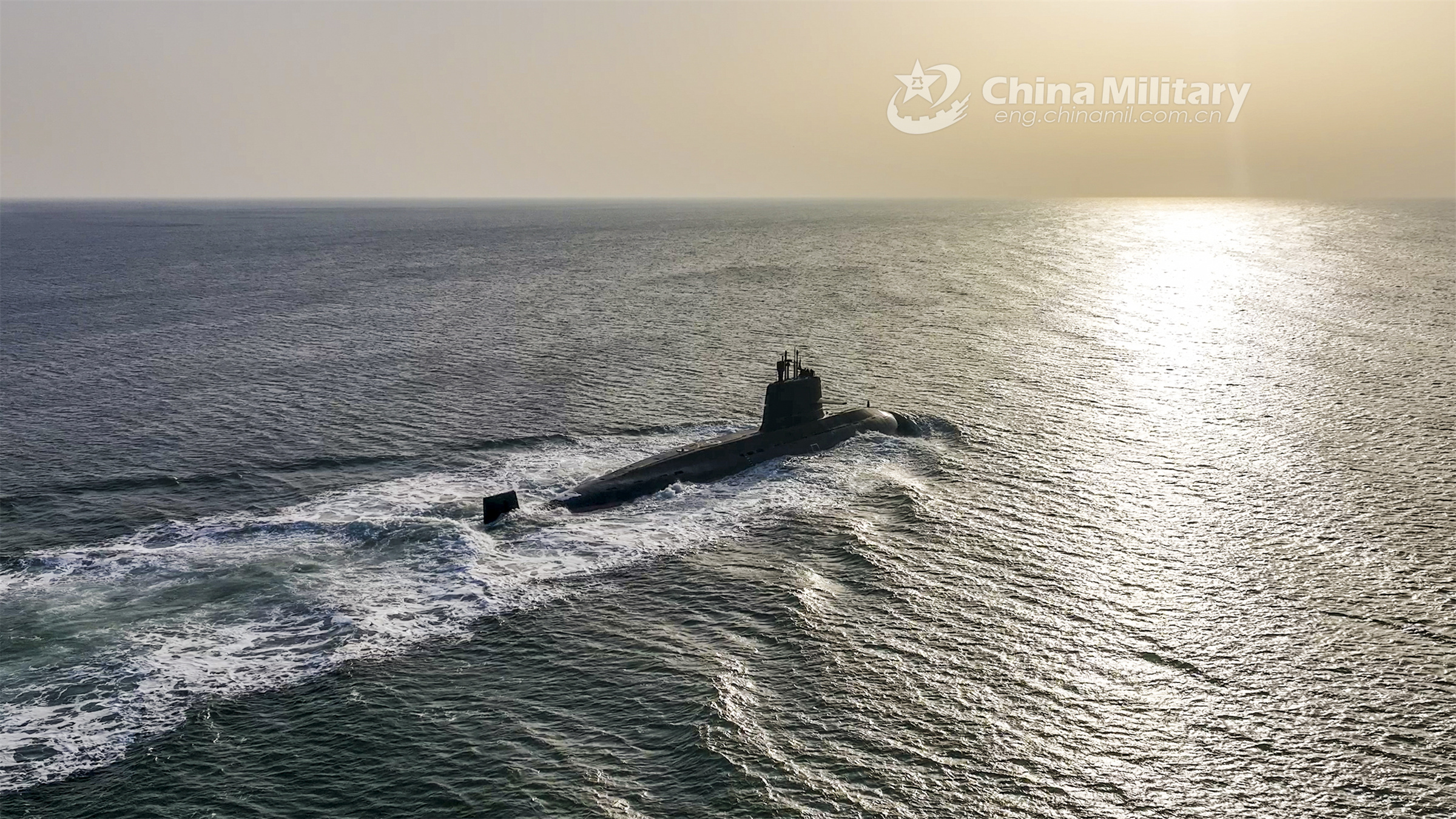 A submarine attached to a submarine flotilla with the navy under the PLA Northern Theater Command steams in the sea during a recent day-and-night maritime combat training exercise. (eng.chinamil.com.cn/Photo by Wu Haodong)