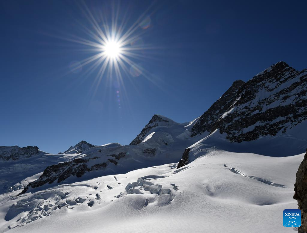 This photo taken on Feb. 14, 2023 shows Jungfrau Peak (C) in Switzerland. (Xinhua/Lian Yi)