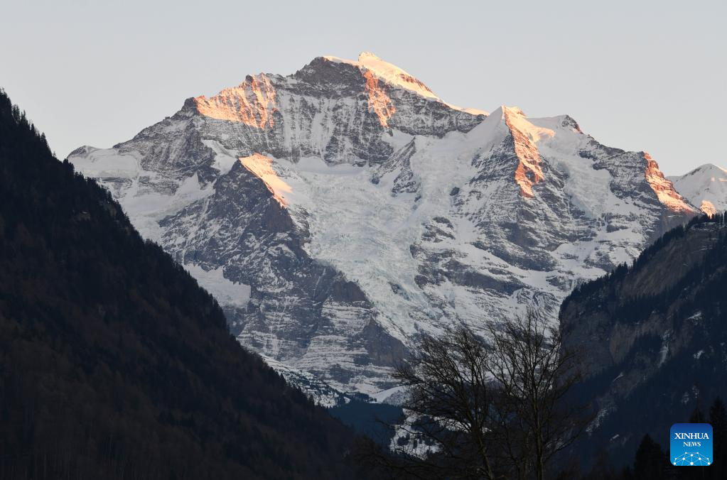 This photo taken on Feb. 14, 2023 shows Jungfrau Peak at sunset in Switzerland. (Xinhua/Lian Yi)