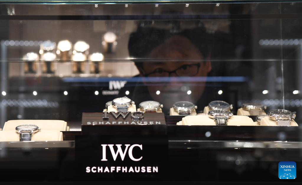 A Chinese tourist views watches at a store in Lucerne, Switzerland, Feb. 13, 2023. (Xinhua/Lian Yi)