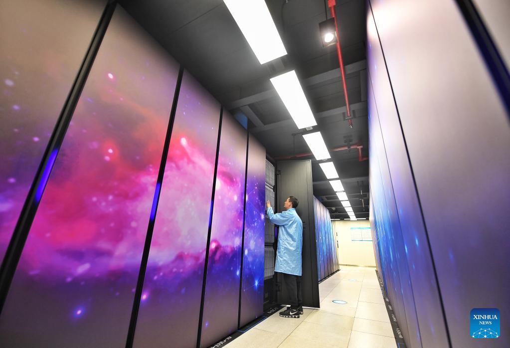 A staff member checks equipment at the National Supercomputing Center in Chengdu, southwest China's Sichuan Province, Feb. 14, 2023. (Xinhua/Liu Kun)