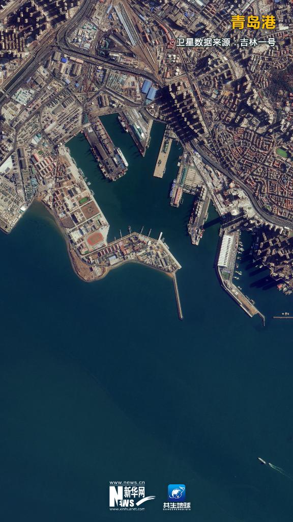 The satellite image shows Qingdao Port. (Photo/Xinhua)