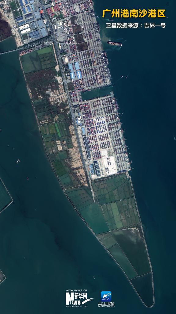 The satellite image shows part of Guangzhou Port. (Photo/Xinhua)