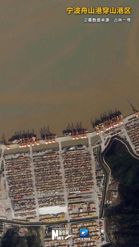The satellite image shows part of Ningbo-Zhoushan Port. (Photo/Xinhua)