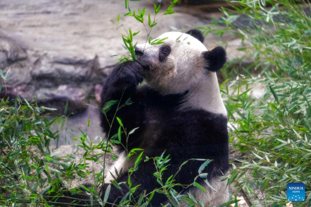 This photo taken on Feb. 19, 2023 shows giant panda Xiang Xiang at Ueno Zoological Gardens in Tokyo, Japan. (Xinhua/Zhang Xiaoyu)