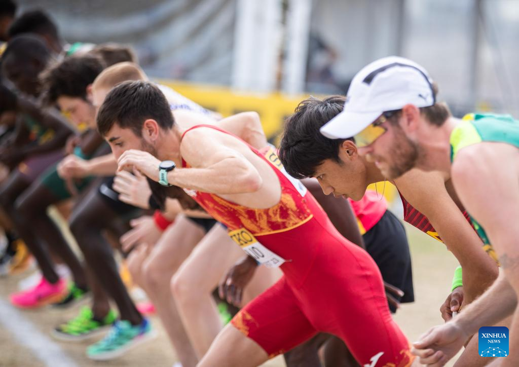 Players prepare before the men's 10km race at the World Athletics Cross Country Championships Bathurst 23 in Bathurst, New South Wales, Australia, on Feb. 18, 2023. (Photo by Hu Jingchen/Xinhua)