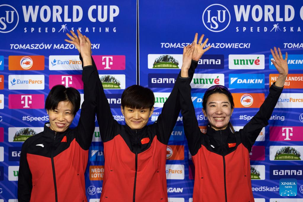 WARSAW, Feb. 18 (Xinhua) -- The United States won the women's team sprint at the ISU Speed Skating World Cup followed by Canada and China in Tomaszow Mazowiecki, Poland on Saturday.