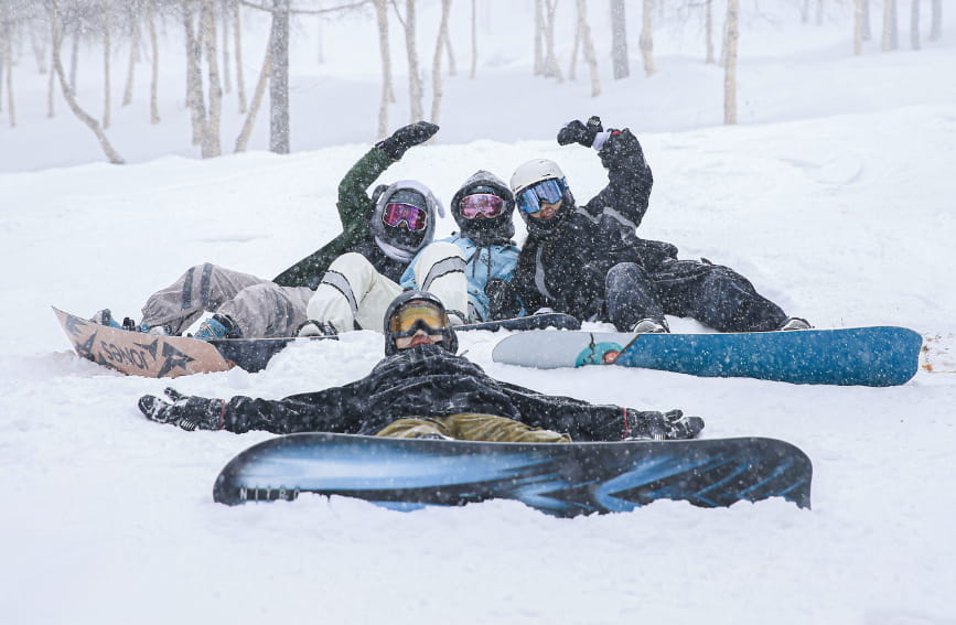 Four skiers take a group photo at a ski resort in Chongli district, Zhangjiakou city, in north China’s Hebei Province. (Photo/Publicity Department of the CPC Chongli District Committee)