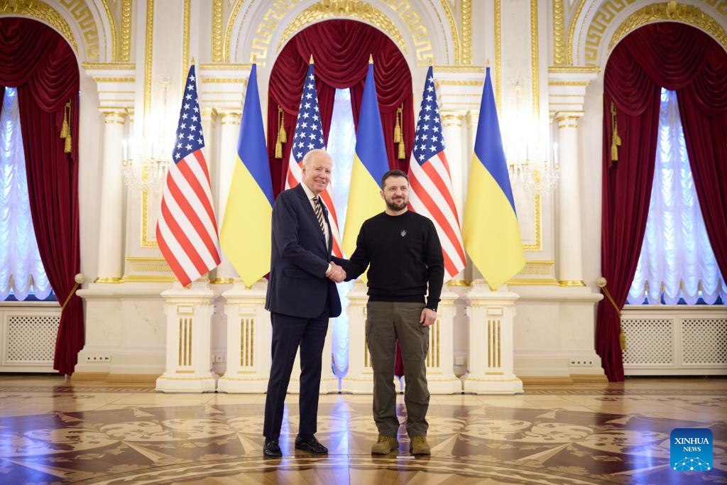 KIEV, Feb. 20 (Xinhua) -- U.S. President Joe Biden made an unannounced visit here on Monday, one day after demonstrators rallied in Washington to protest against the United States' war-mongering foreign policy and its role in various conflicts across the globe.