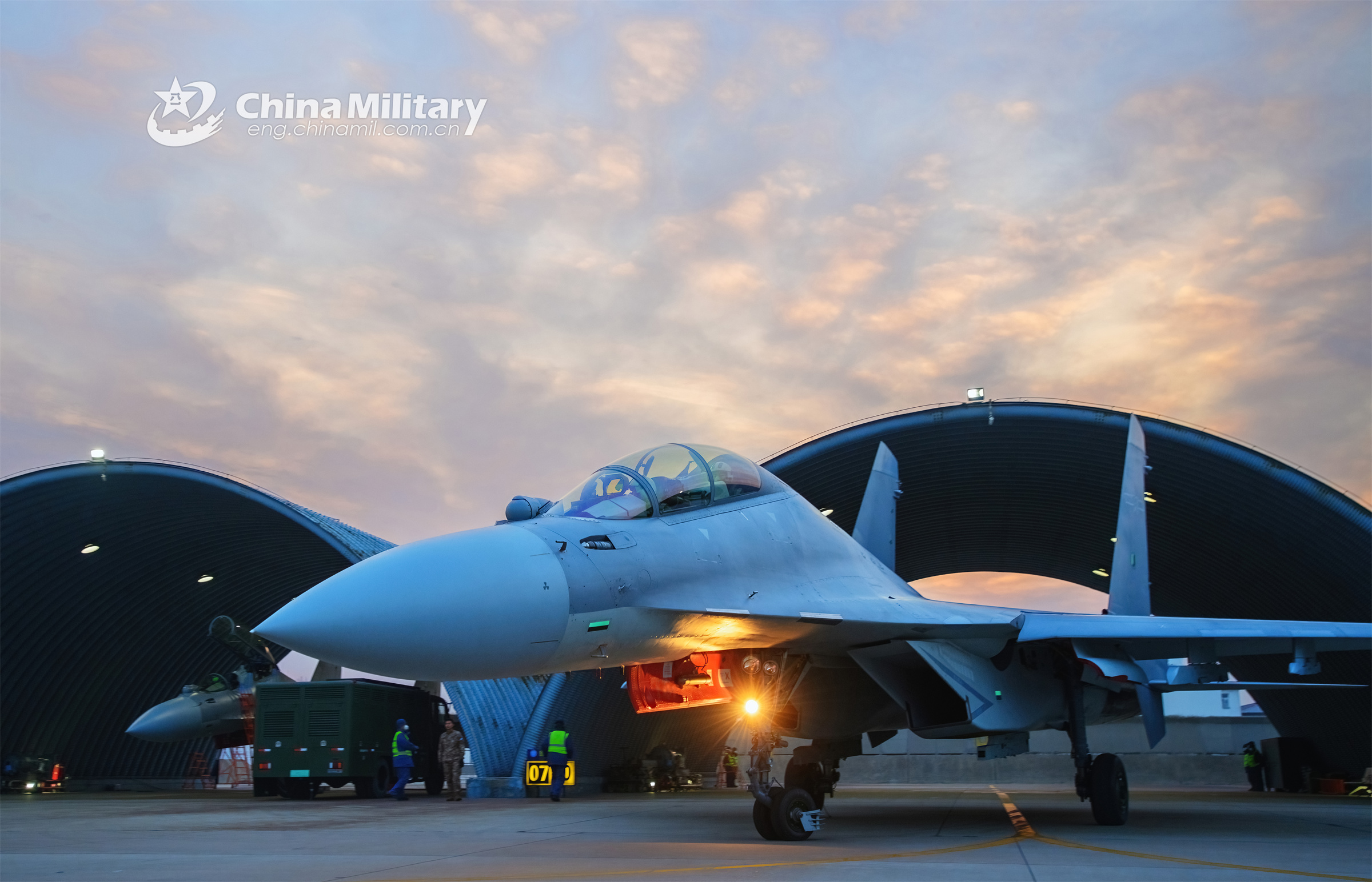Pilots assigned to an aviation regiment of the PLA Air Force sit in the cockpit of their fighter jet during a recent round-the-clock training exercise. (eng.chinamil.com.cn/Photo by Xu Chentong)
