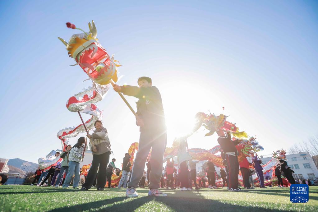 Photo taken on Feb. 20 shows children from a primary school performing a dragon dance to celebrate the Longtaitou Festival in Zunhua, north China’s Hebei Province. (Xinhua/Liu Mancang)