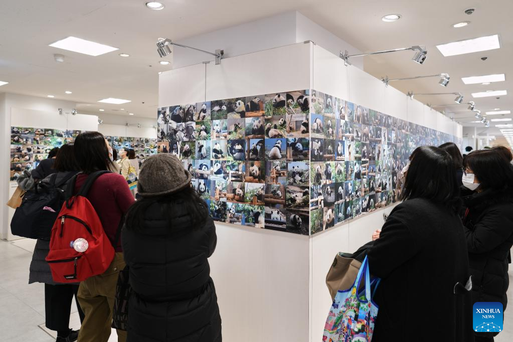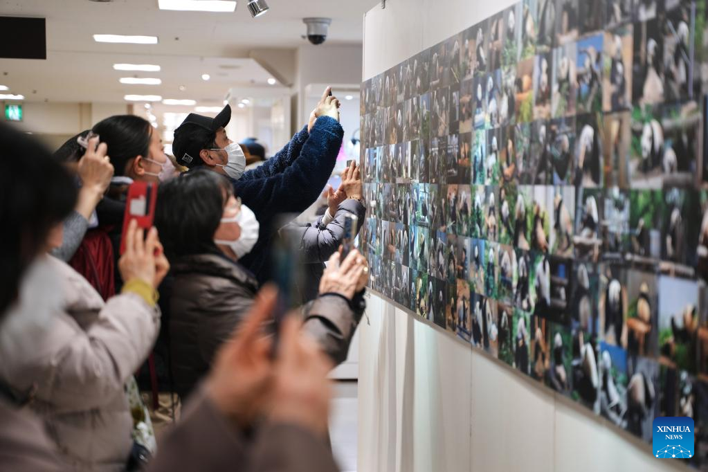 People visit a photographic exhibition of giant panda Xiang Xiang in Tokyo, Japan, Feb. 17, 2023. Xiang Xiang will be sent home to China on Tuesday. (Xinhua/Zhang Xiaoyu)