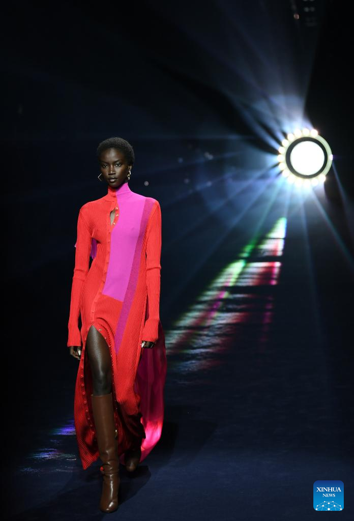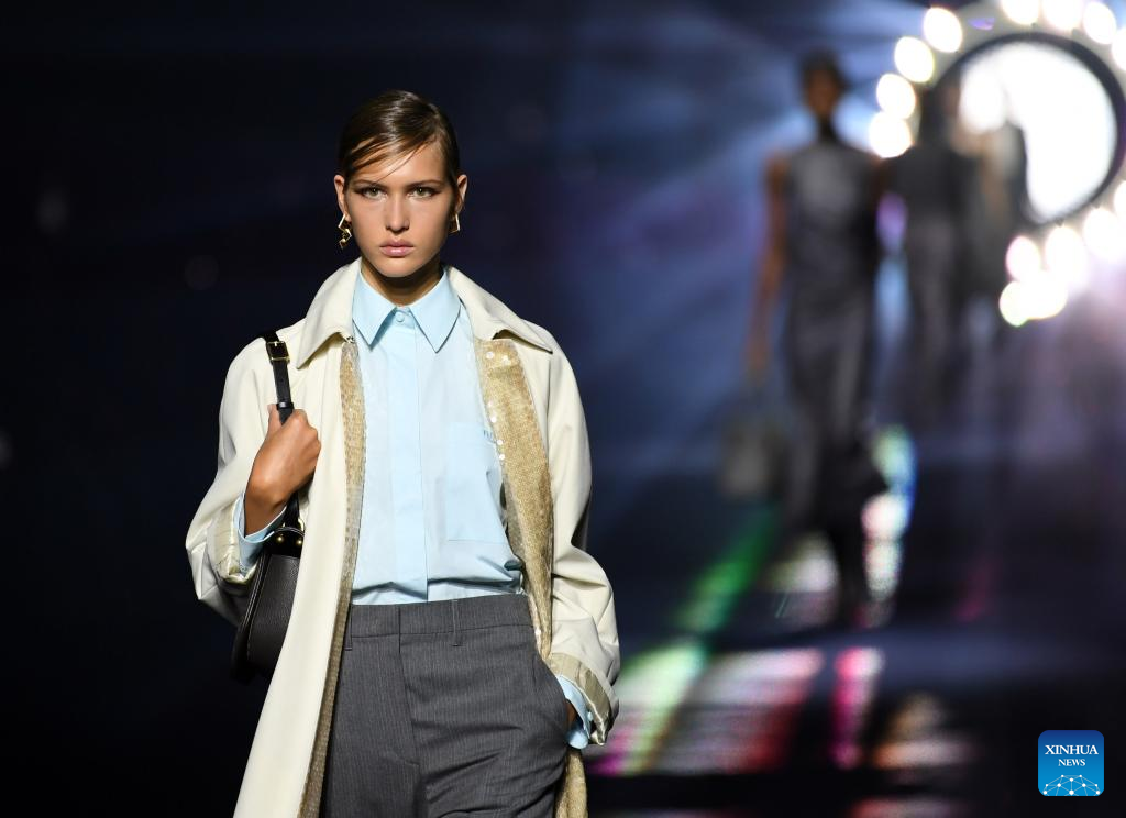 A model presents a creation from the Fendi Fall/Winter 2023/2024 collection during Milan Fashion Week in Milan, Italy, on Feb. 22, 2023. (Xinhua/Jin Mamengni)