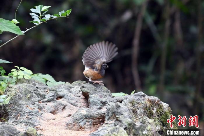 Photo shows a white-rumped shama in Nonggang village, Longzhou county, south China’s Guangxi Zhuang Autonomous Region. (Chinanews.com/Jiang Xuelin)