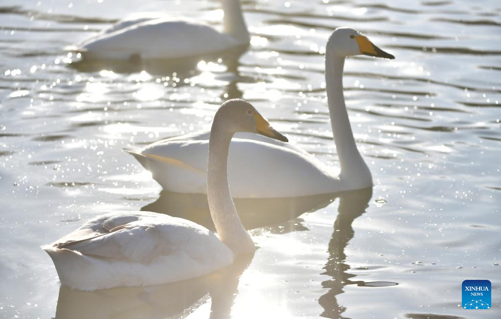 - White swans arrive at wetland in north China’s Shanxi in early winter