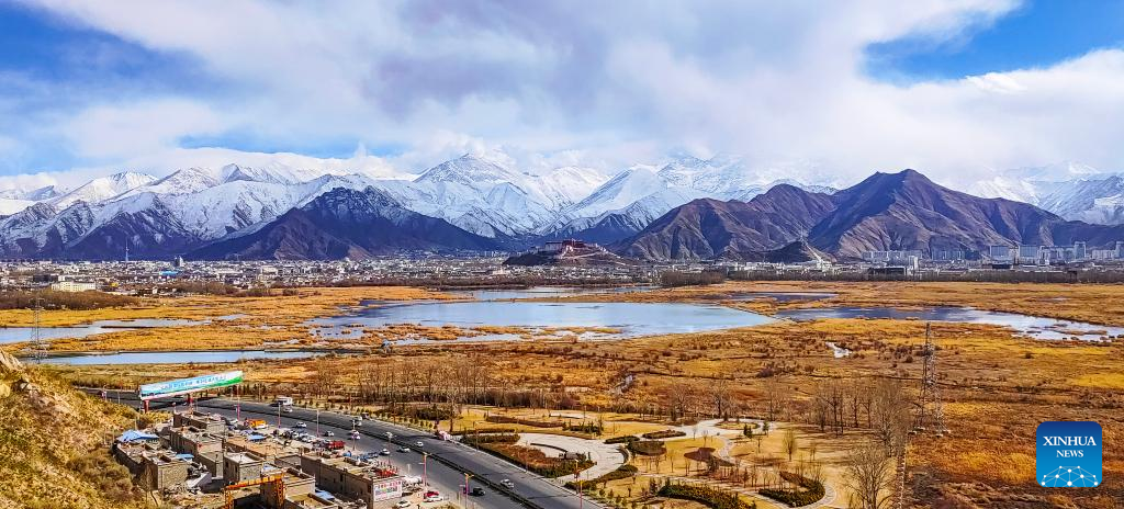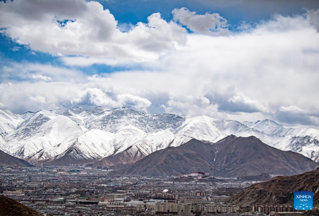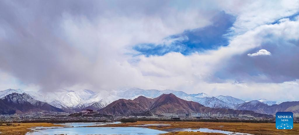 This photo taken on Feb. 24, 2023 show a view after a snowfall in Lhasa, southwest China's Tibet Autonomous Region. (Xinhua/Sun Fei)