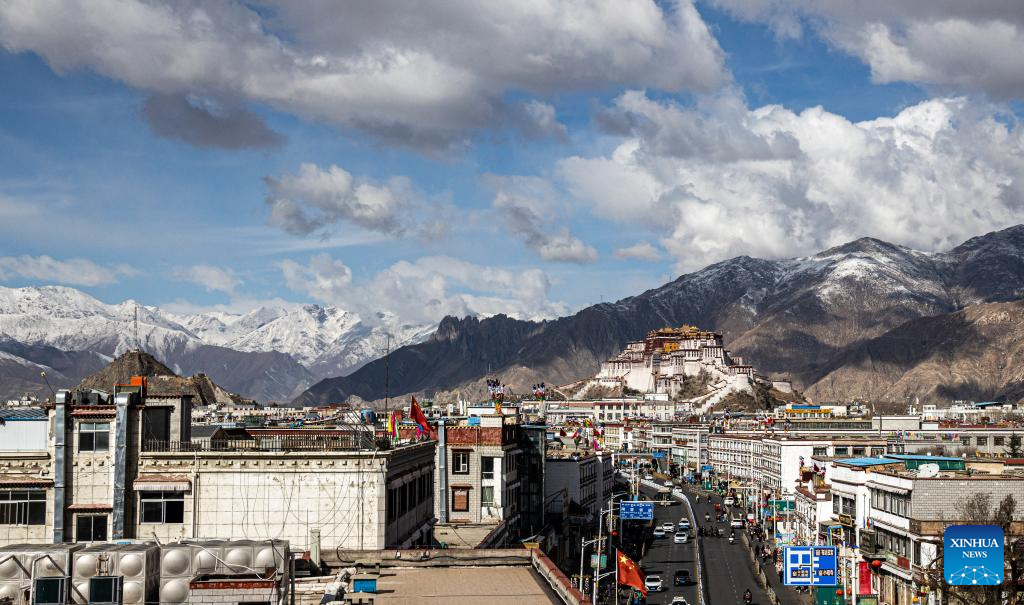 This photo taken on Feb. 24, 2023 show a view after a snowfall in Lhasa, southwest China's Tibet Autonomous Region. (Xinhua/Jigme Dorje)