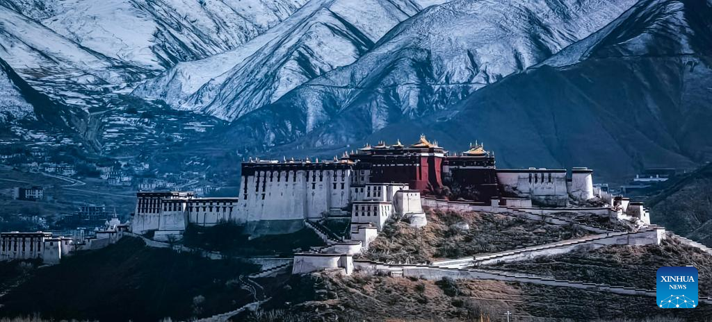 This photo taken with a mobile phone on Feb. 24, 2023 show a view of the Potala Palace after a snowfall in Lhasa, southwest China's Tibet Autonomous Region. (Xinhua/Shen Hongbing)