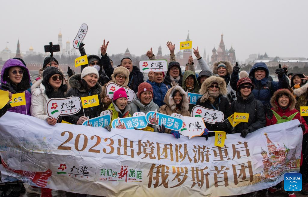 MOSCOW, Feb. 24 (Xinhua) -- Russia on Thursday greeted the first group of Chinese tourists with grand ceremony here, after three years of suspension due to the COVID-19 pandemic.