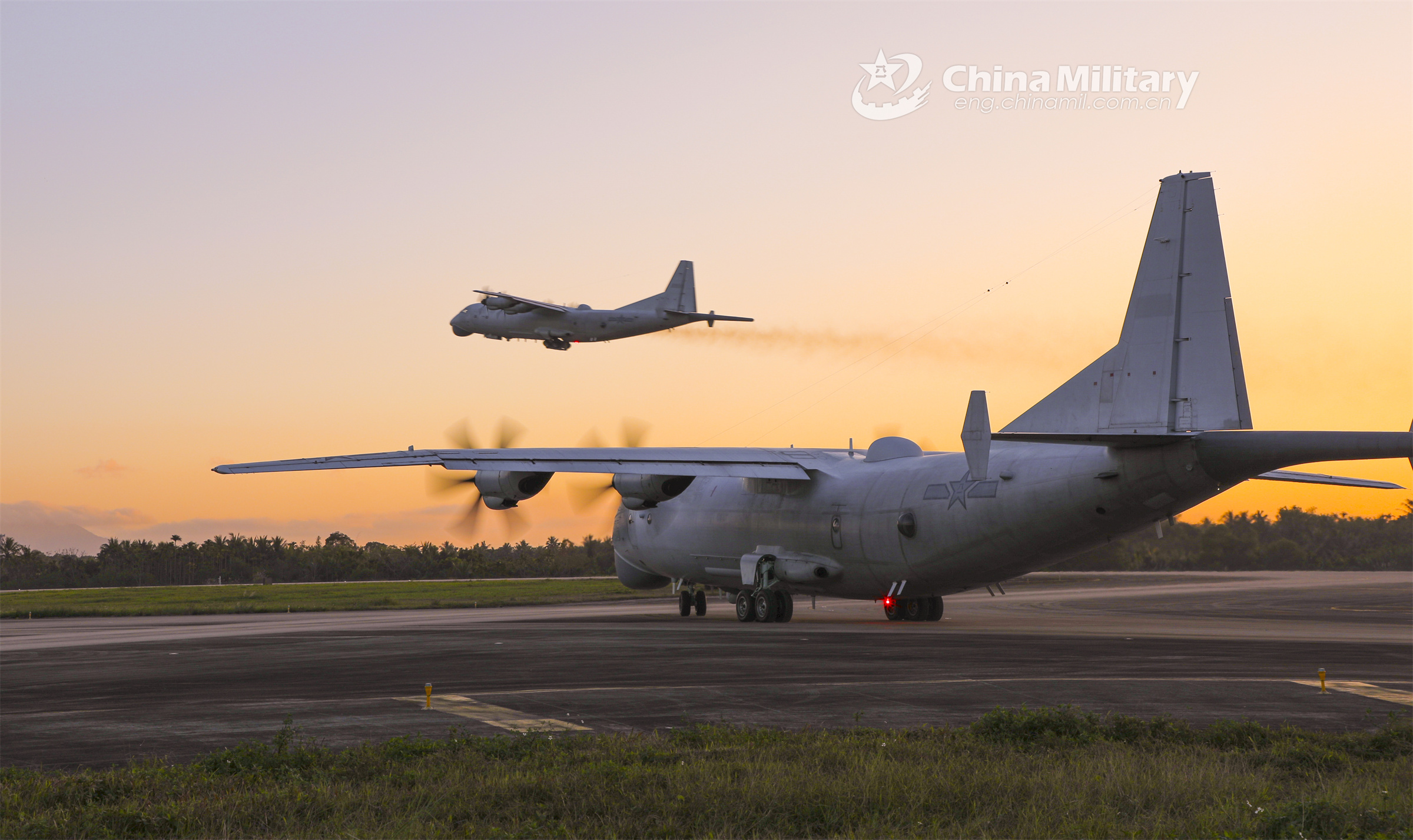 Anti-submarine patrol aircraft attached to a naval aviation regiment under the PLA Southern Theater Command participate in a recent training exercise, which aims to hone the skills and combat capabilities of the troops. (eng.chinamil.com.cn/Photo by Qin Qianjiang)