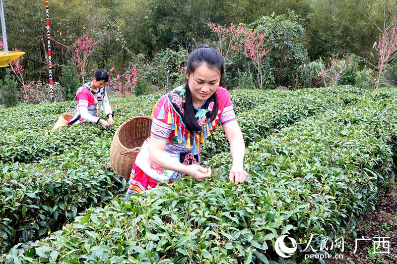 Workers pick tea leaves in Zhaoping county, south China’s Guangxi Zhuang Autonomous Region. (People’s Daily Online/Huang Zijing)