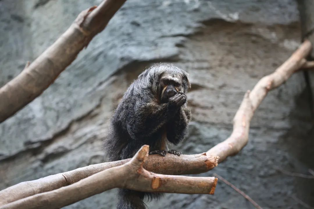 White-faced sakis are also very smart. They are good at imitating human behavior, and often make visitors laugh, according to the zoo.