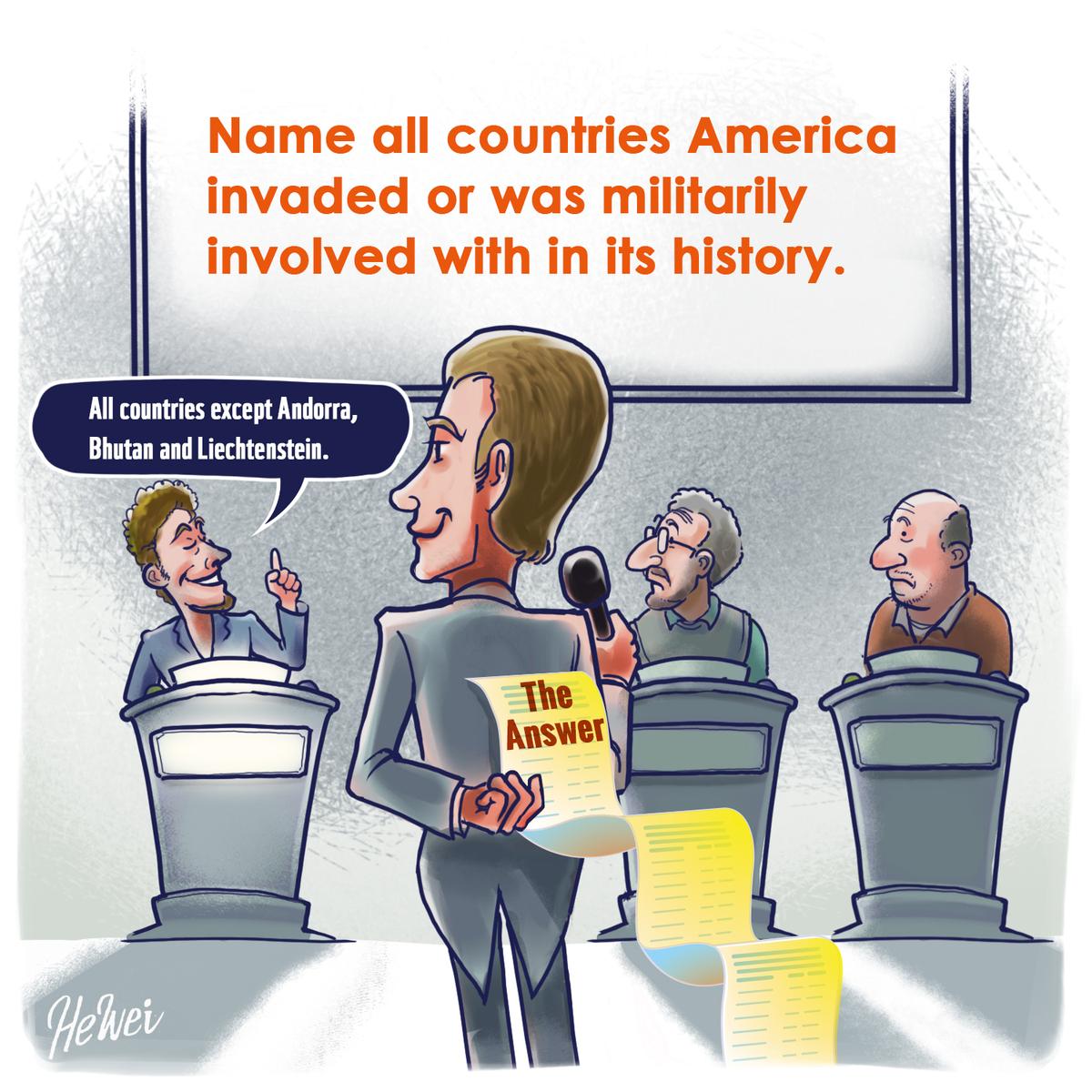 The US has invaded nearly half the world's countries and been militarily involved with all the rest, except Andorra, Bhutan and Liechtenstein.