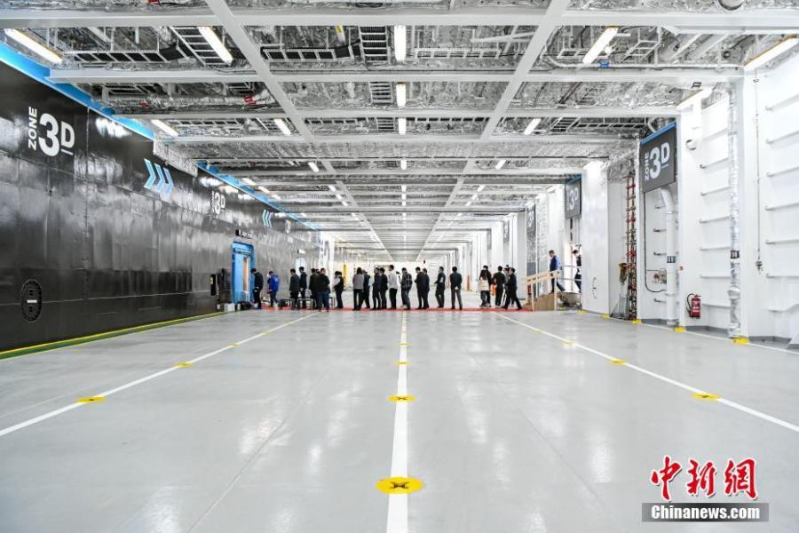 Photo shows the interior view of the world's first large-capacity batter hybrid ro-ro passenger ship in Guangzhou, south China's Guangdong Province, Feb. 28, 202. (Photo: China News Service/Chen Jimin)