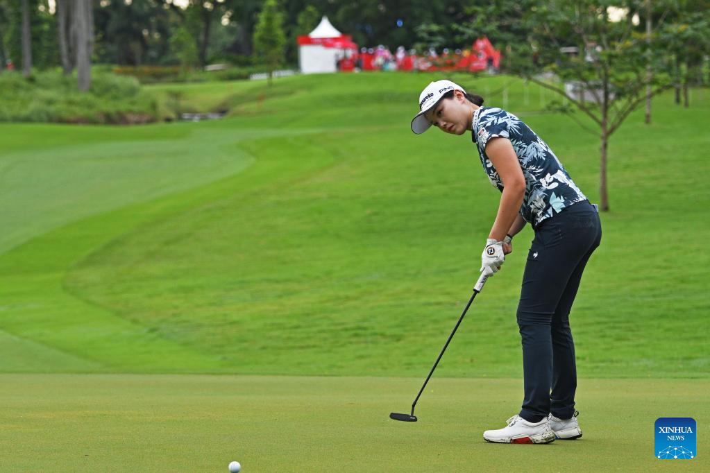 Shi Yuting of China competes on the first day of the HSBC Women's World Championship held at Singapore's Sentosa Golf Club on March 2, 2023. (Photo by Then Chih Wey/Xinhua)