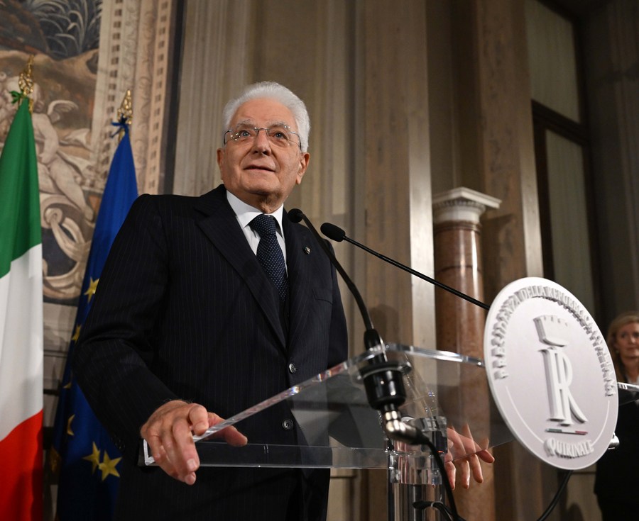 Italian President Sergio Mattarella speaks to the media after a meeting at the Quirinale Presidential Palace in Rome, Italy, Oct. 21, 2022. (Photo by Alberto Lingria/Xinhua)