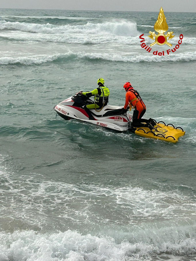 This photo taken with a mobile phone shows rescuers searching for survivors off the coast of the southern Italian region of Calabria, on Feb. 26, 2023. (Italian Firefighters/Handout via Xinhua)