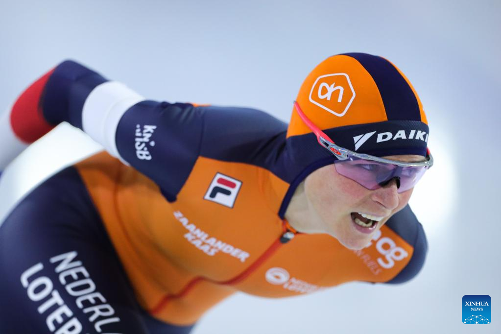 Irene Schouten of the Netherlands competes during women's 3000m on the Day 1 of the ISU World Speed Skating Championships in Heerenveen, the Netherlands, March 2, 2023. (Xinhua/Zheng Huansong)