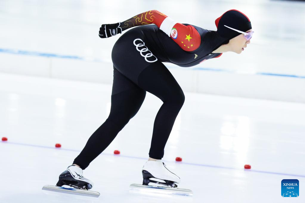 Yang Binyu of China competes during women's 3000m on the Day 1 of the ISU World Speed Skating Championships in Heerenveen, the Netherlands, March 2, 2023. (Xinhua/Zheng Huansong)