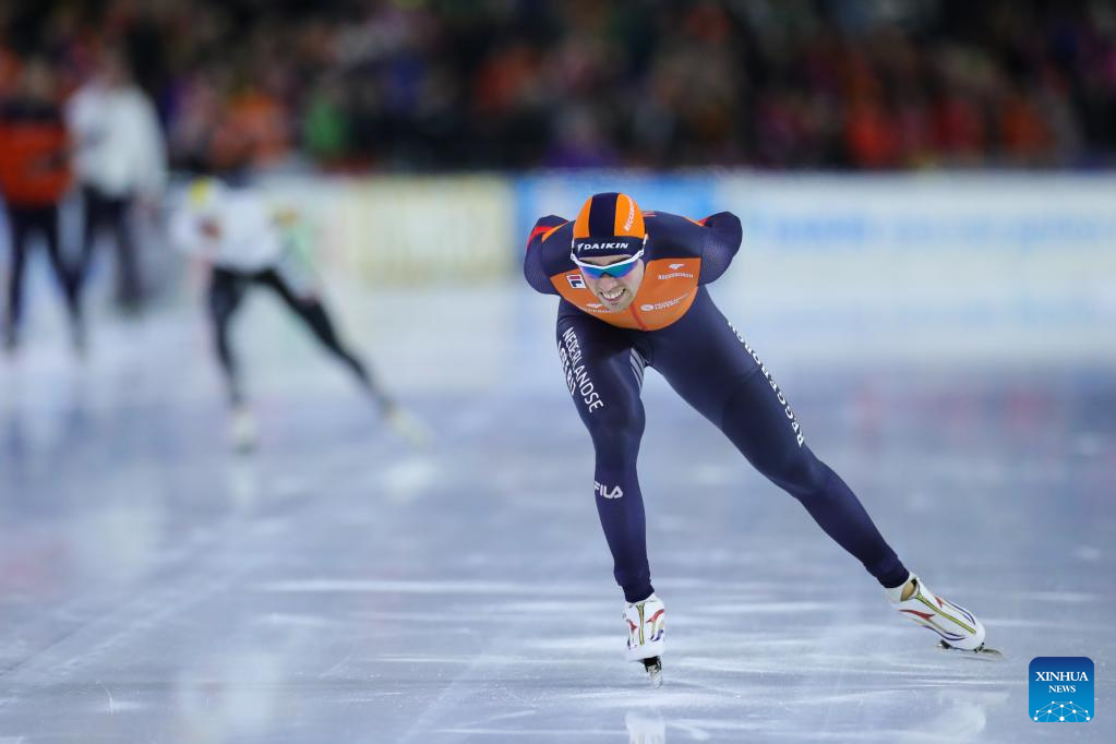 Patrick Roest of the Netherlands competes during men's 5000m on the Day 1 of the ISU World Speed Skating Championships in Heerenveen, the Netherlands, March 2, 2023. (Xinhua/Zheng Huansong)