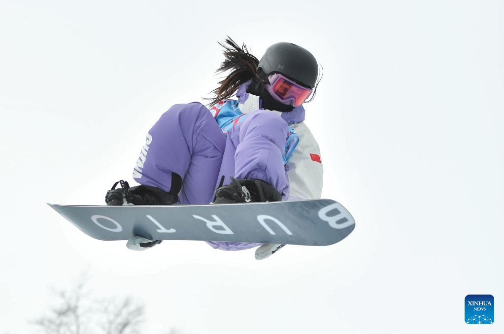 Yang Lu of China competes during the women's halfpipe final at the FIS Snowboard World Championships in Bakuriani, Georgia, March 3, 2023. (Photo by Tamuna Kulumbegashvili/Xinhua)