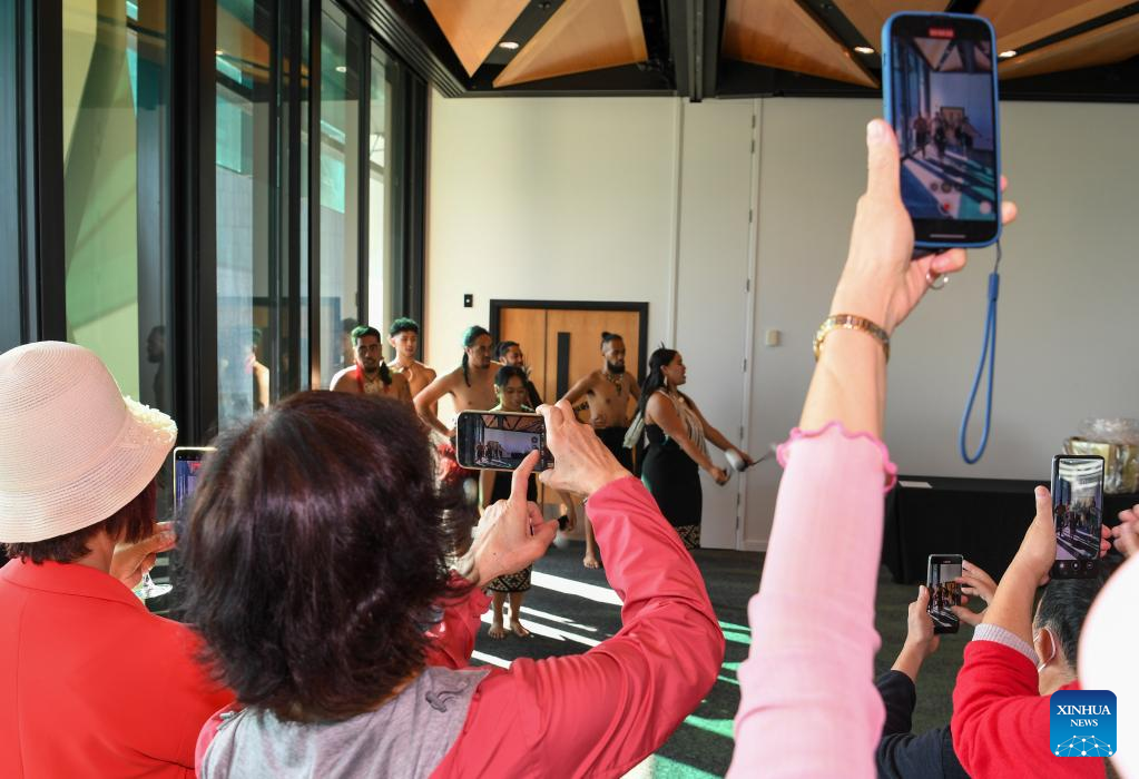 New Zealand's government officials, Chinese embassy representatives and business leaders welcomed the tour group at the airport. Pounamu (New Zealand greenstone jade) pendants and New Zealand-China diplomatic relations 50th anniversary first-day covers were presented to the tourists as gifts at the ceremony, which also featured New Zealand traditional Maori performances.