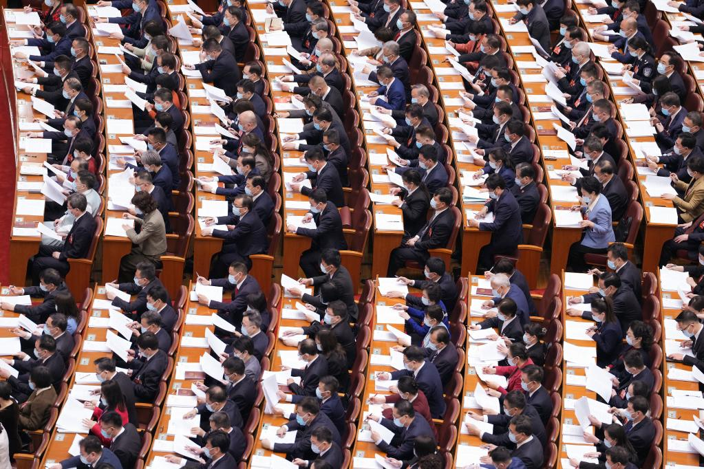 Members of the National Committee of the Chinese People's Political Consultative Conference (CPPCC) sit in on the opening meeting of the first session of the 14th National People's Congress (NPC) as non-voting participants at the Great Hall of the People in Beijing, capital of China, March 5, 2023. (Xinhua/Li Xin)