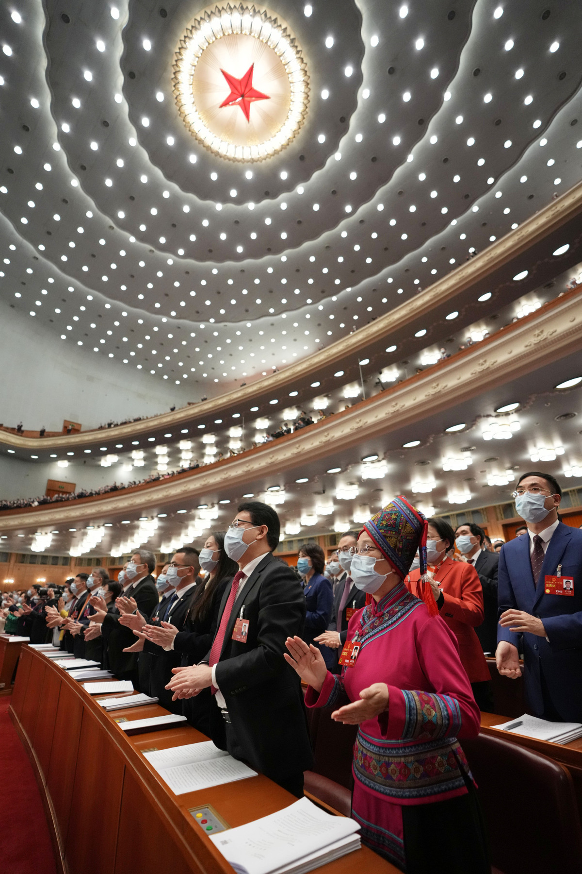 Deputies to the National People's Congress attend the first session of the 14th NPC on Sunday. The session runs from Sunday to Mar 13. [Photo/Xinhua]